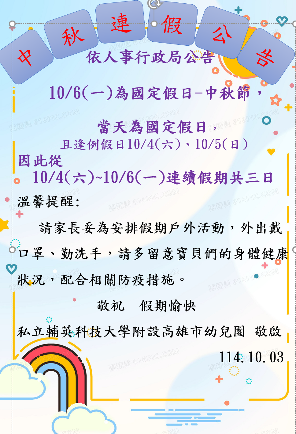 中秋節連假公告